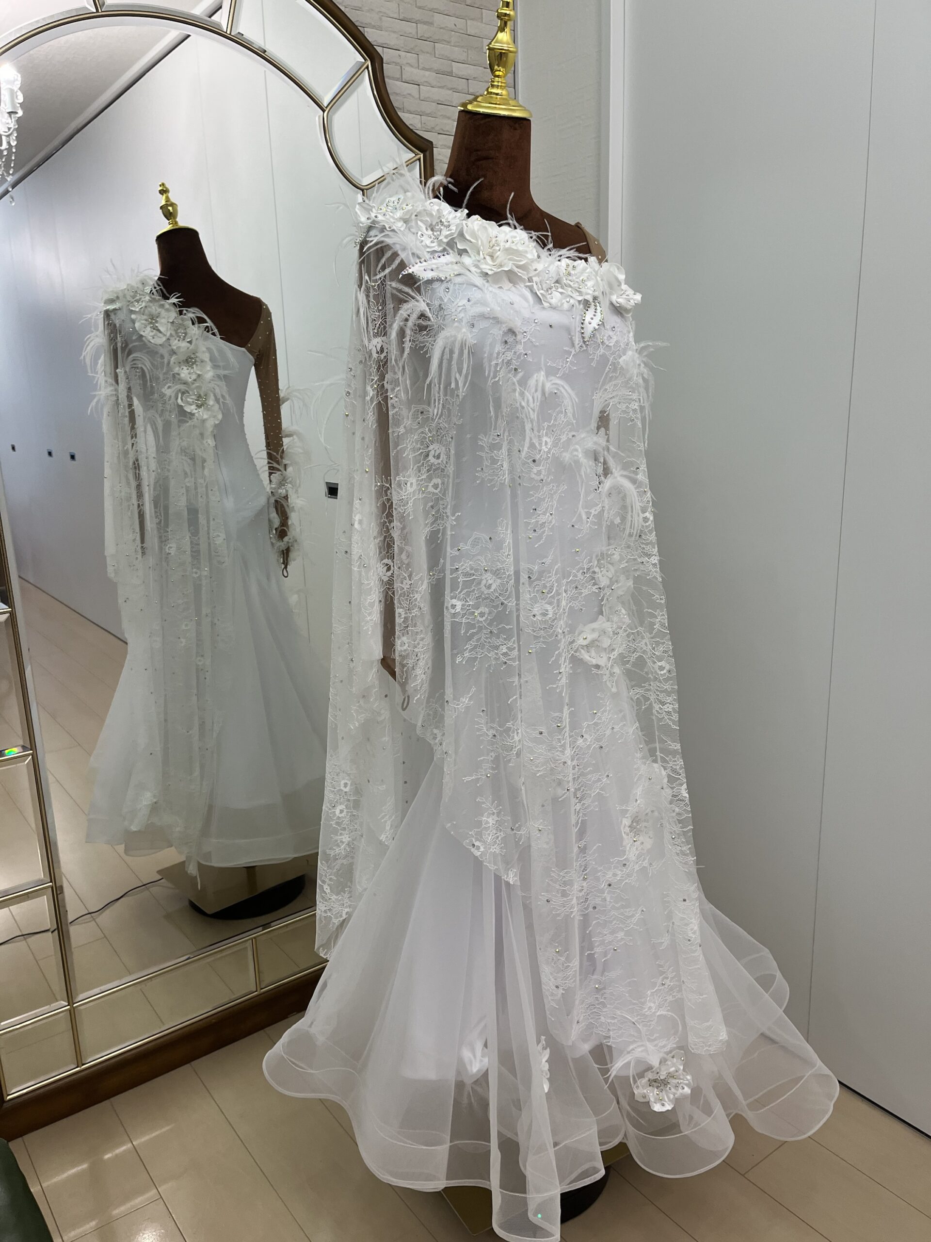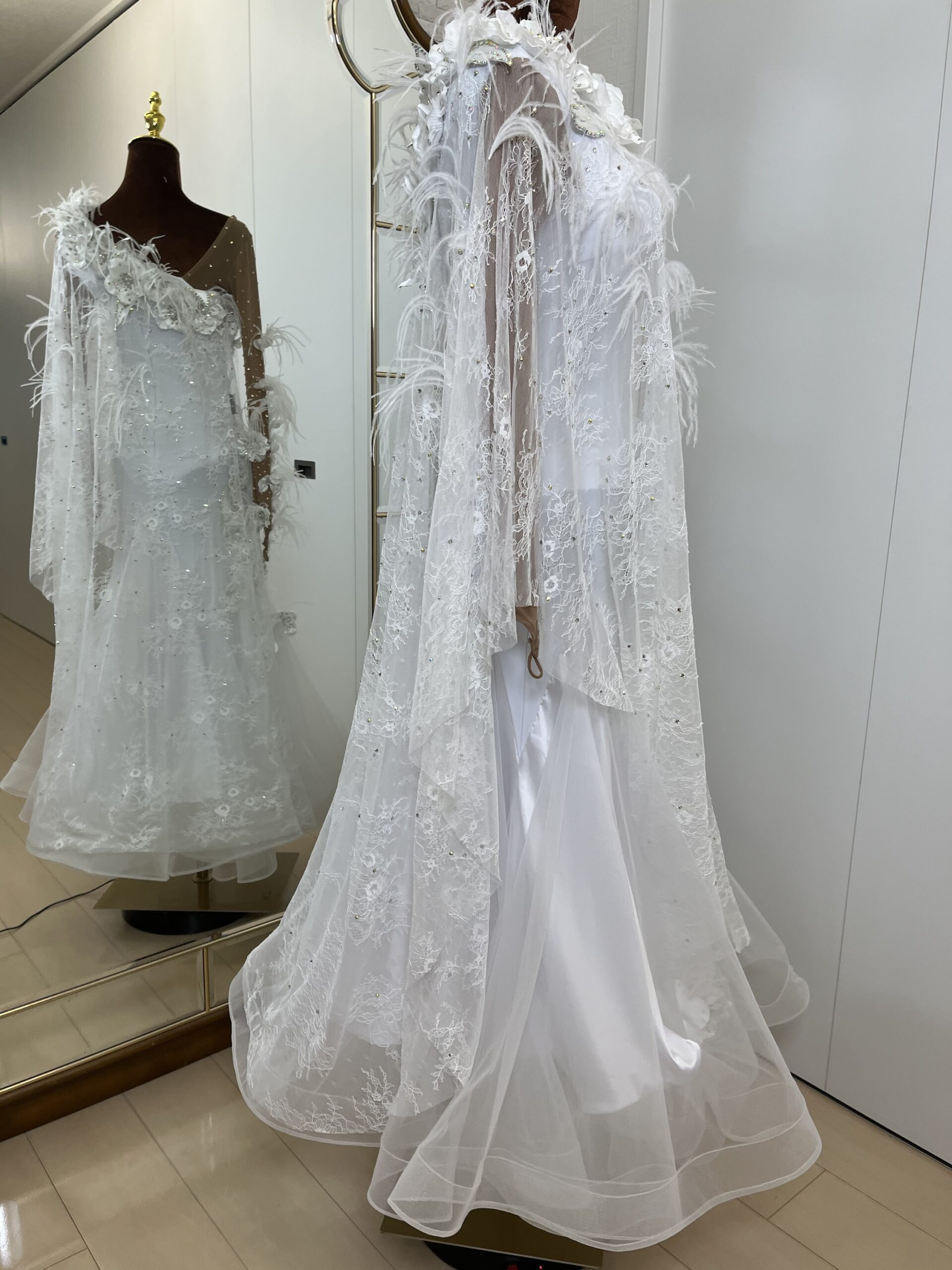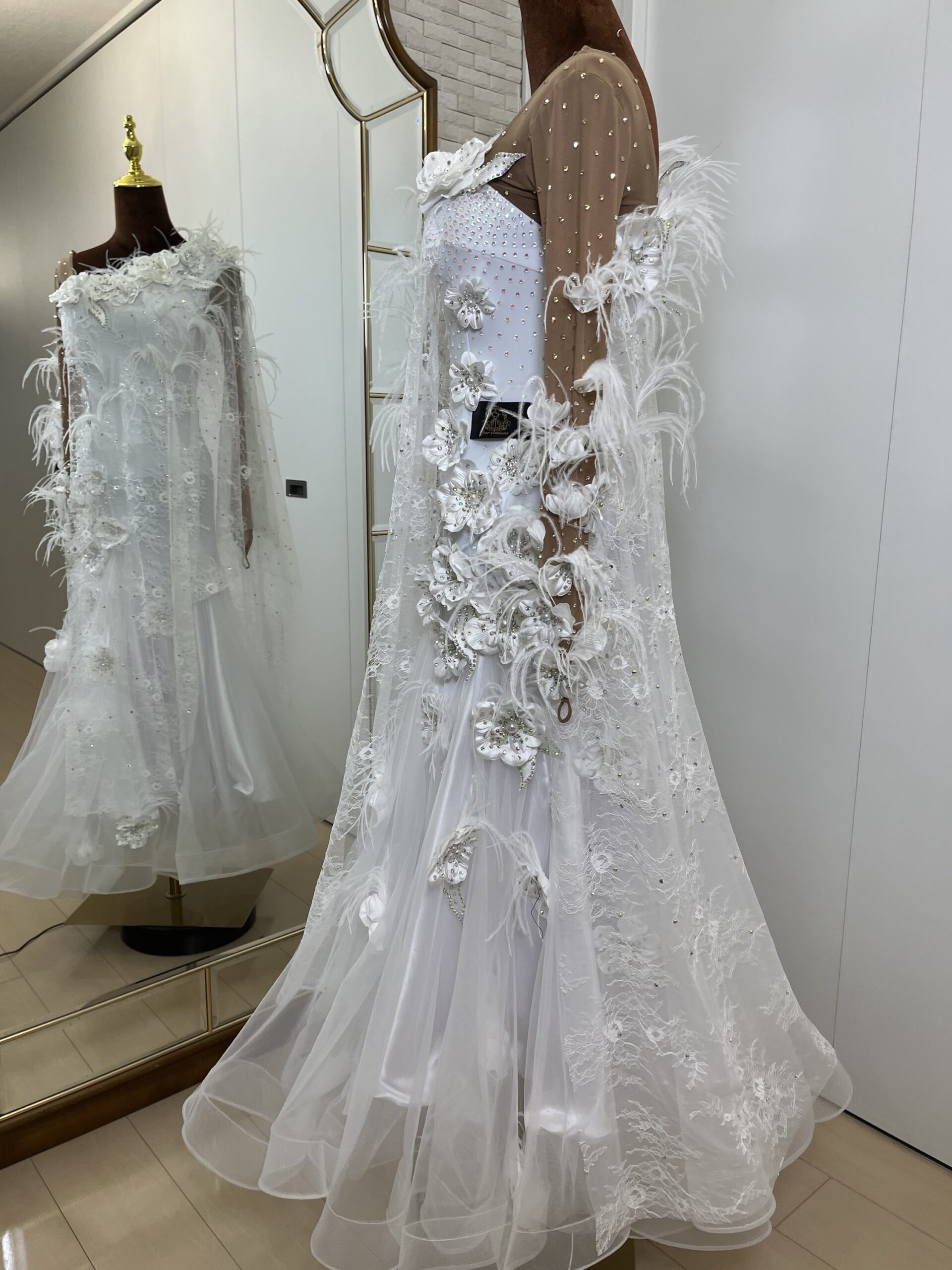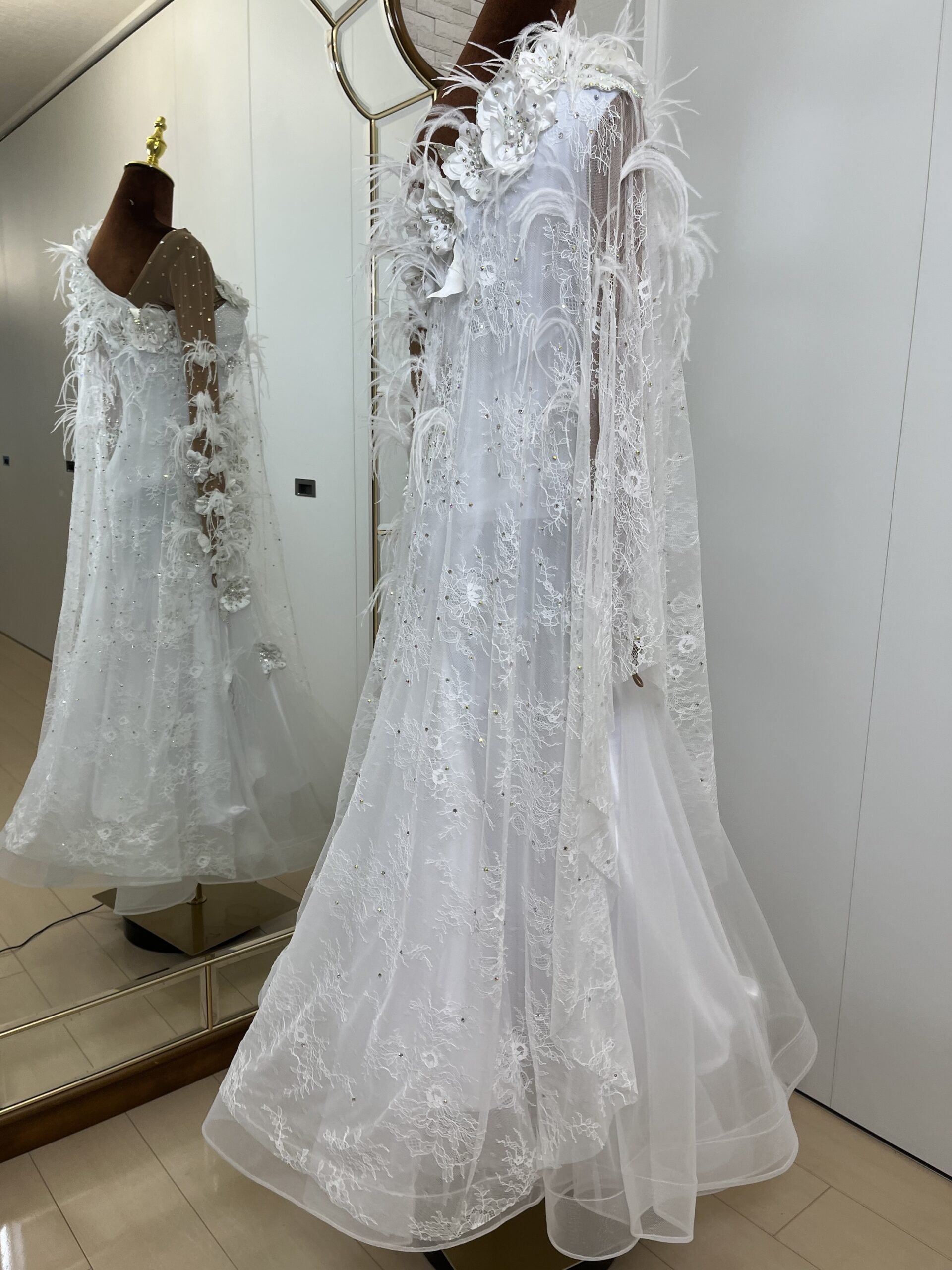 ステージの光を最大限に受け止め、まるで天使が舞うかのような幻想的な一着です。