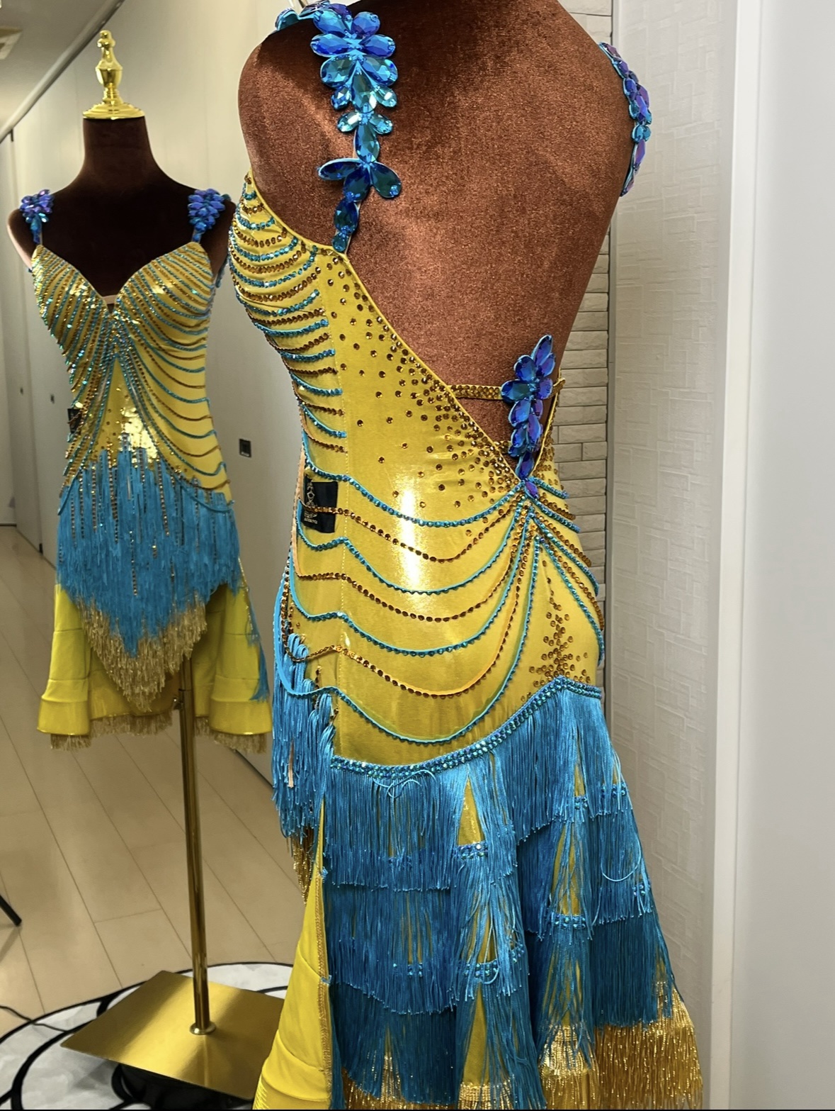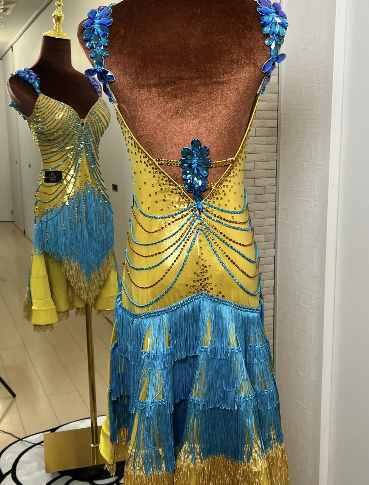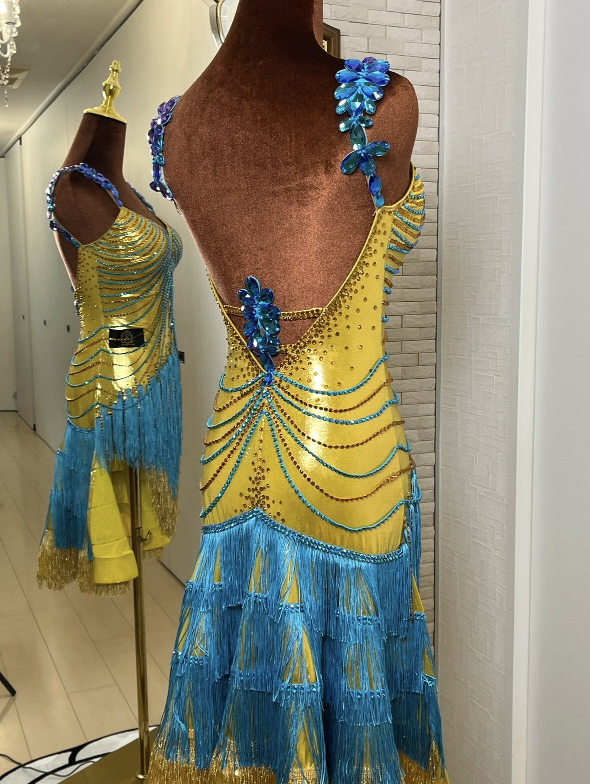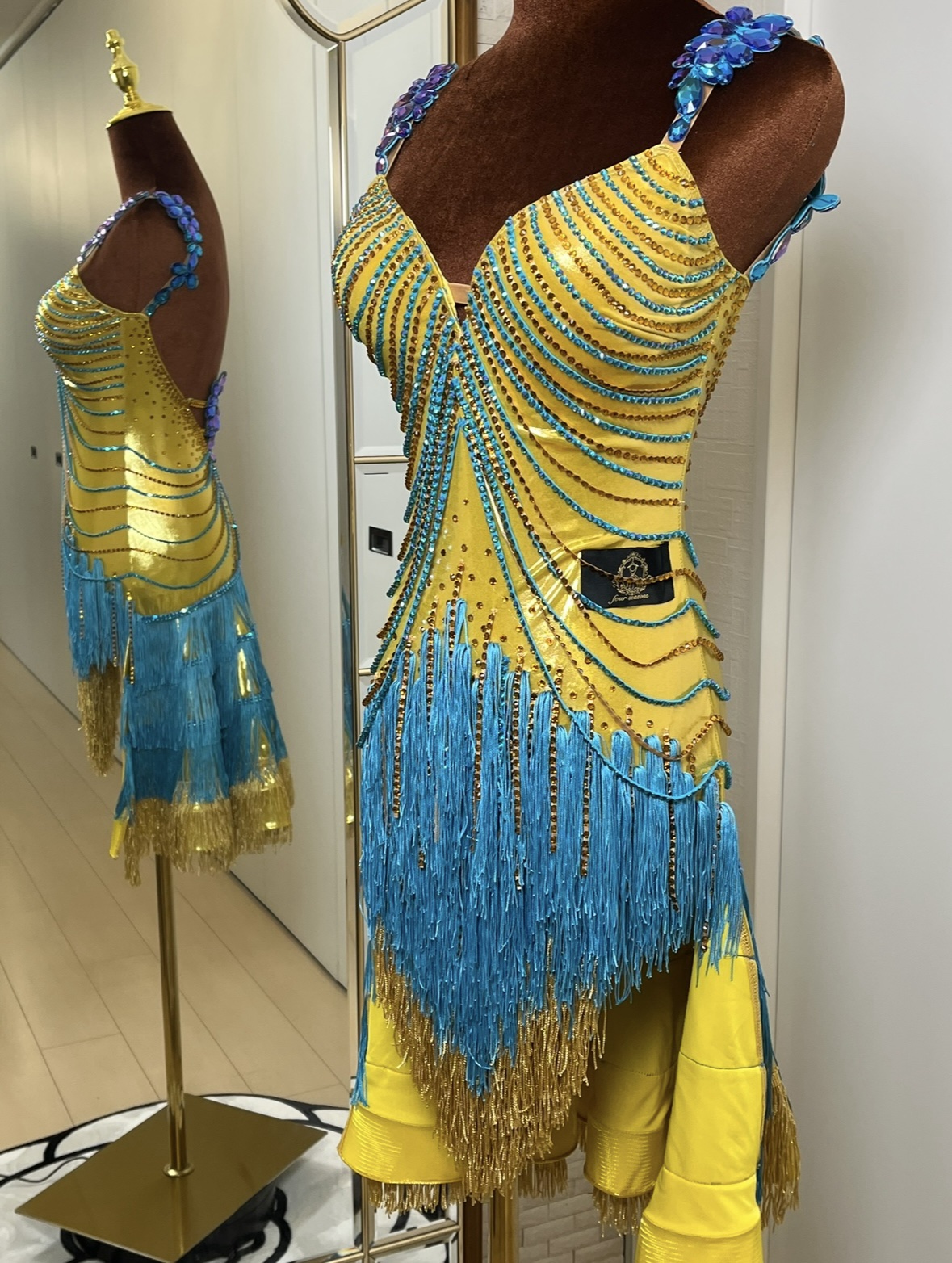 ブルーとゴールドの2色フリンジ(動きに合わせて鮮やかに揺れる仕様)